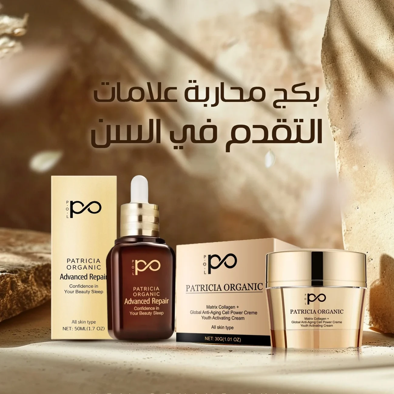 بكج علاجي متكامل صُمّم خصيصاً لمواجهة علامات التقدّم في السن، التجاعيد، فقدان الشد والنضارة. يعتمد على تركيبات متطورة تعمل بتناغم لإعادة بناء البشرة، تنشيط خلاياها، ومنحها مظهراً مشدوداً، ممتلئاً وأكثر شباباً بوضوح.