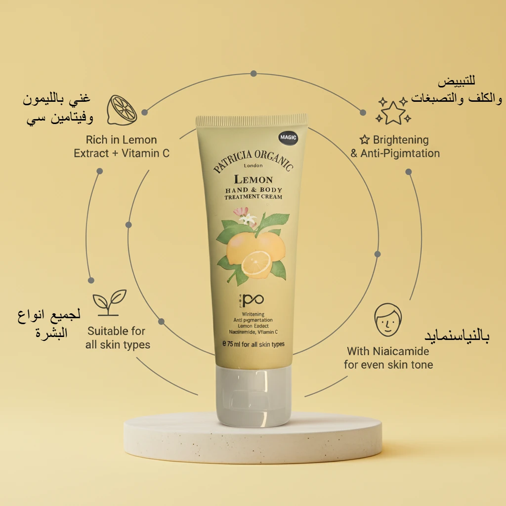 كريم يدين وجسم منعش بالليمون يمنح ترطيباً عميقاً ونعومة فورية، يقوّي الأظافر ويحميها من التكسر، سريع الامتصاص وغير دهني. مناسب للرجال والنساء
