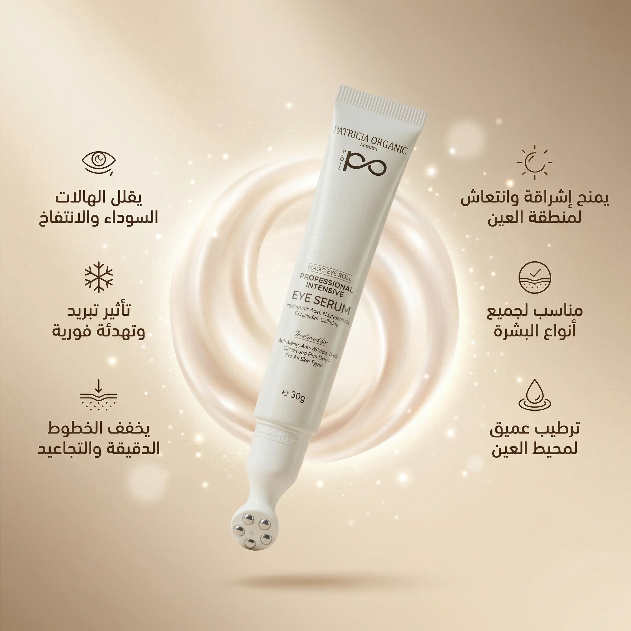 علاج مركز ومتخصص لمنطقة ما حول العين، مصمم بتقنية الرول البارد ليعمل مباشرة على شد البشرة، تقليل التجاعيد الدقيقة، معالجة الانتفاخات والهالات السوداء، ومنح مظهراً أكثر شباباً وإشراقاً من أول فترة استخدام.