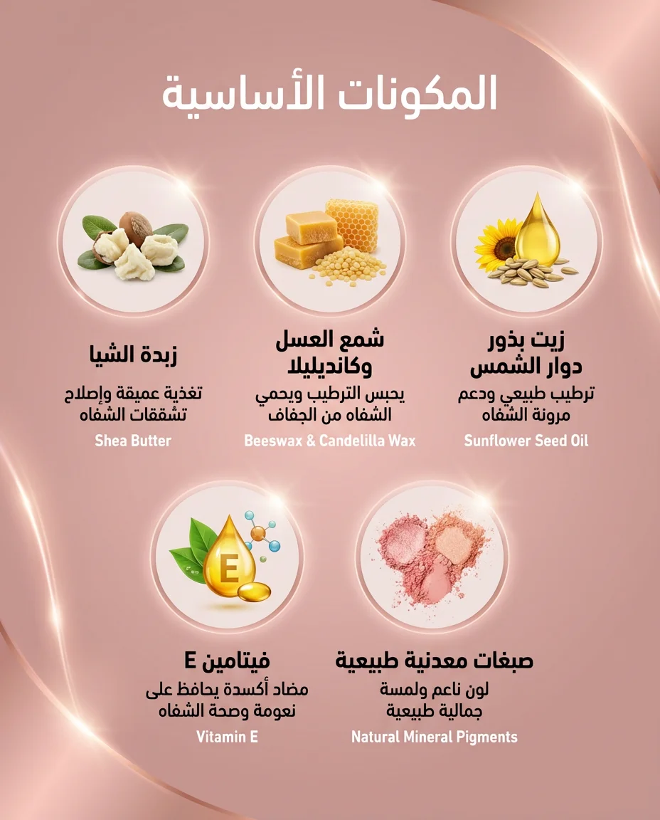 مرطب متعدّد الاستخدامات يمنح ترطيباً عميقاً وراحة فورية، مع توريد طبيعي ولمسة تنت ناعمة تُبرز جمال الشفاه، ويمكن استخدامه أيضاً كتنت خفيف لتوريد الخدود. يساعد على تحسين مظهر الشفاه الداكنة ويقلّل من مظهر الخطوط الدقيقة، ليمنح مظهراً صحياً ومتجدداً.
