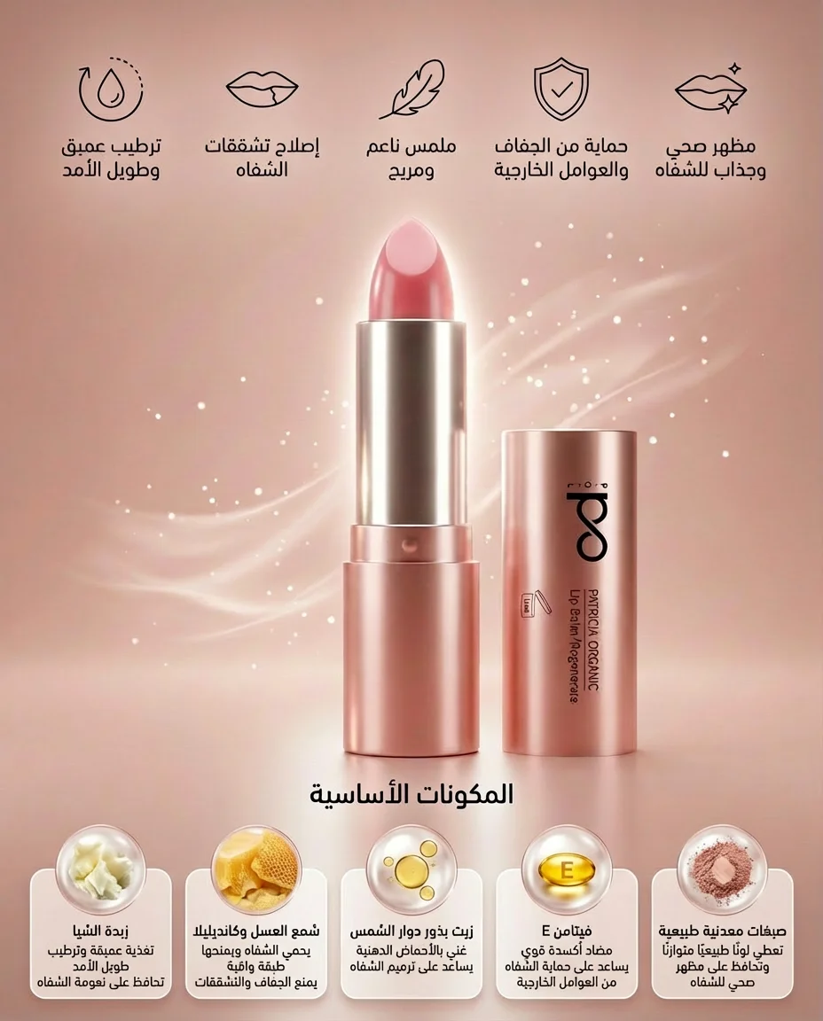 مرطب شفاه من باتريشيا يمنح ترطيباً عميقاً ونعومة فورية، يساعد على علاج الجفاف والتشققات ويمنح مظهراً صحياً طبيعياً للشفاه. مناسب للاستخدام اليومي