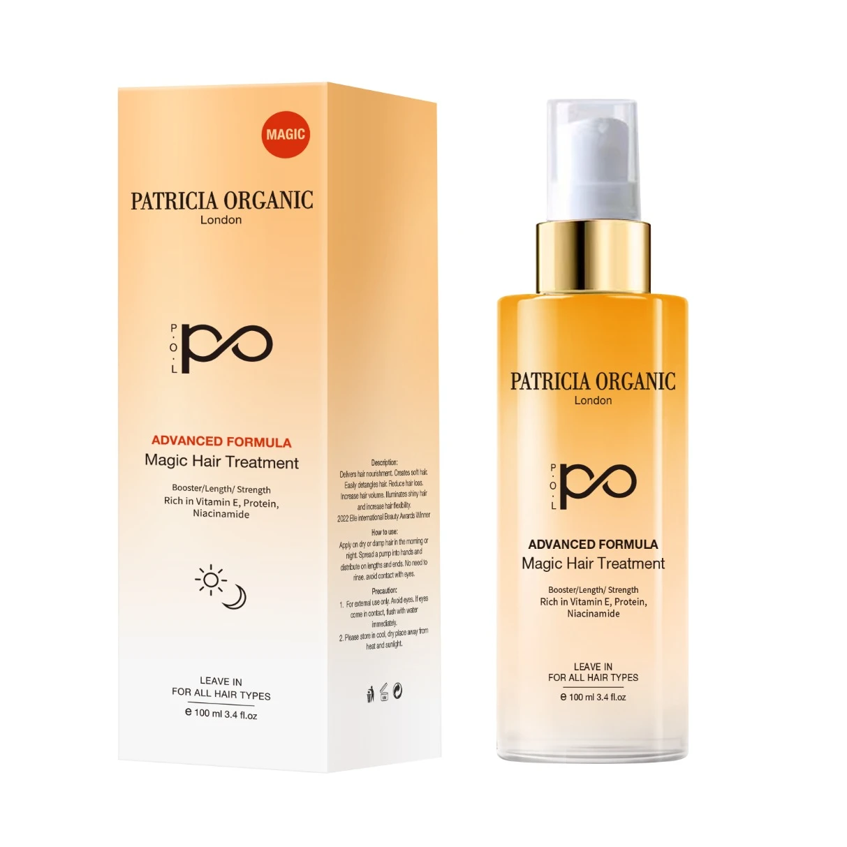 سيروم يُترك على الشعر بدون شطف، يساعد على تقوية الشعر، تقليل الهيشان، ومنحه نعومة ولمعان صحي
